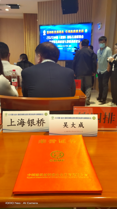 2020年9月4號(hào) 上海銀橋裝飾材料有限公司榮獲全國(guó)裝飾石膏科技創(chuàng)新示范企業(yè)